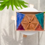 Sadrži trokute i šesterokute za izradu 2D motiva i 3D objekata. Idealno za razvoj simetrije, prostornog razumijevanja i uzoraka.