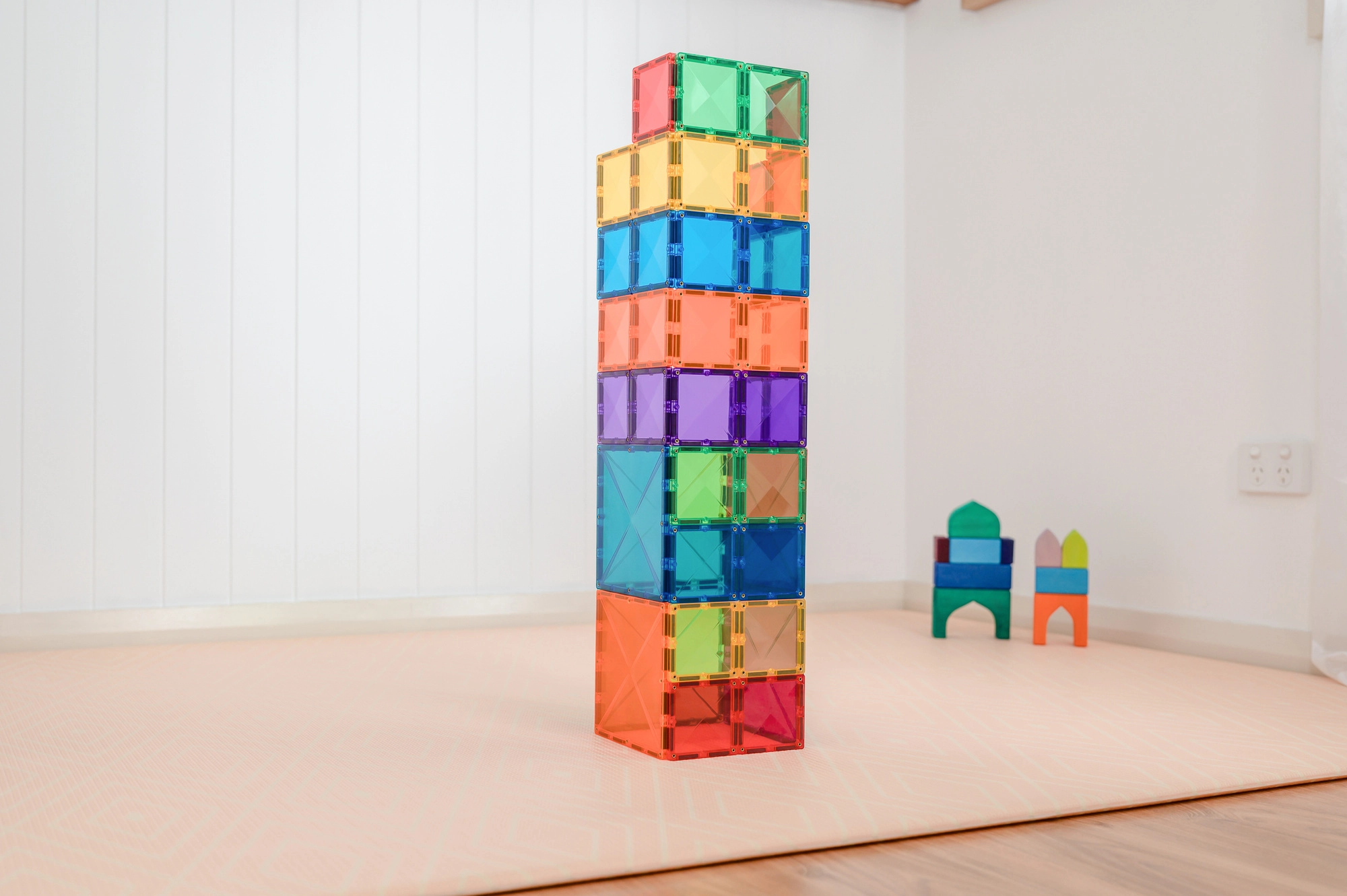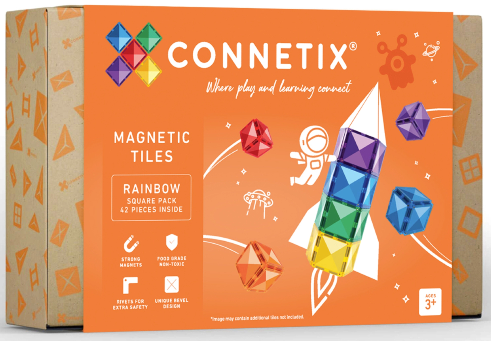 CONNETIX je nagrađivani australski brend koji inspirira djecu na istraživanje znanosti i kreativnosti kroz igru. Set 42 kvadratna dijela u bojama duge odličan je početak za gradnju tornjeva, dvoraca, mostova i raketa. Neodimijski magneti drže čvrsto sa svih strana, a prozirni paneli omogućuju promatranje spojeva i svjetlosnih efekata.