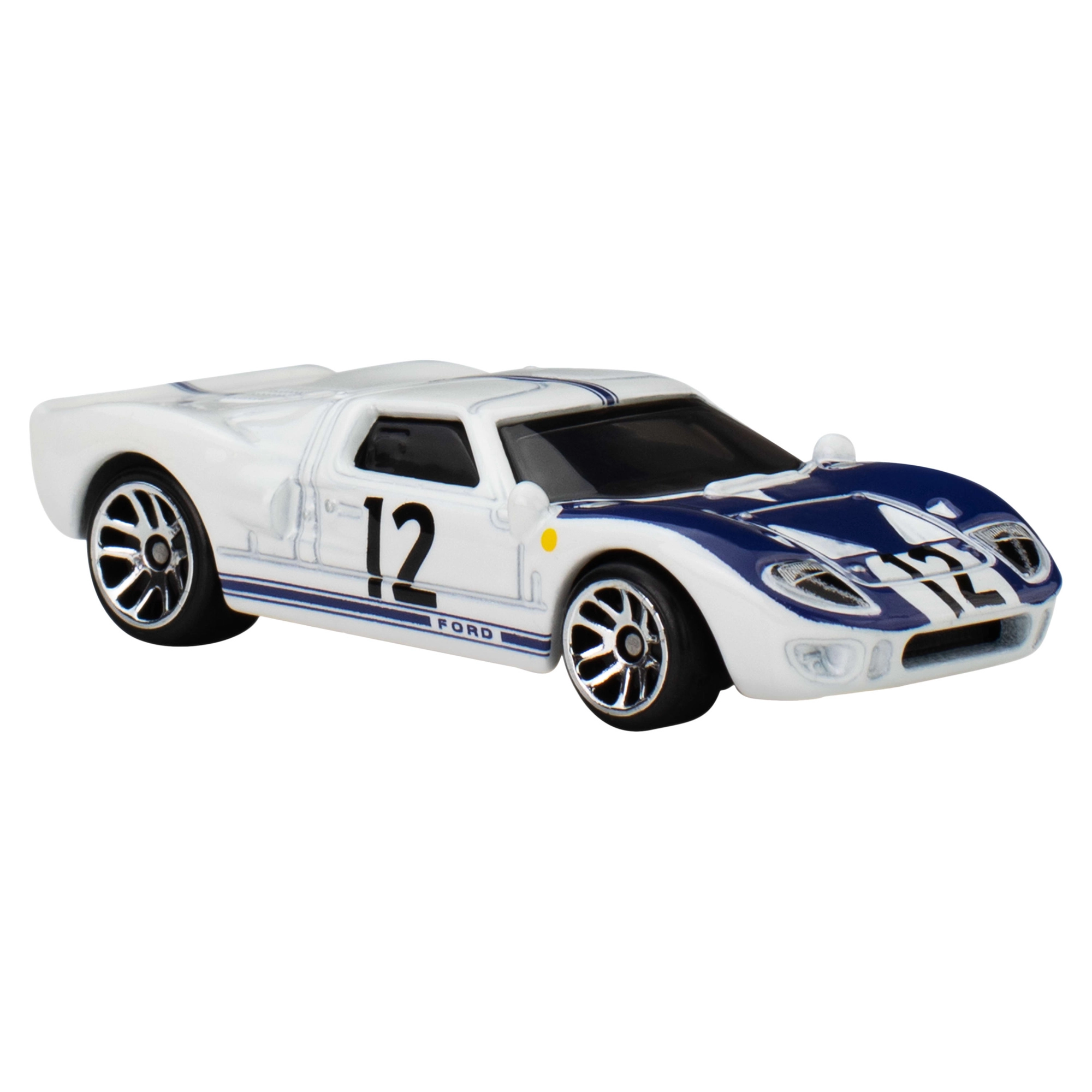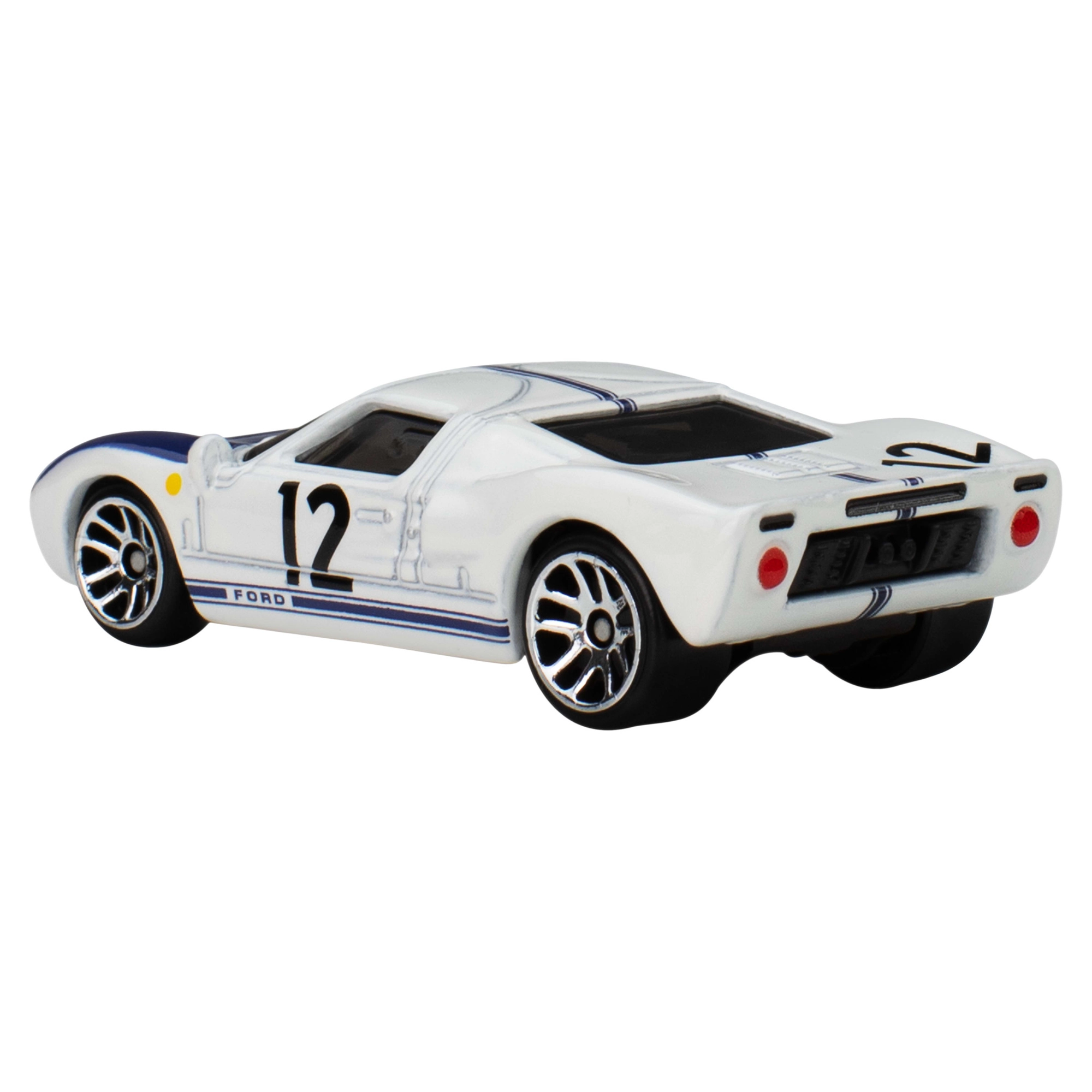 Ikonični model FORD GT40 iz serije Hot Wheels Silver Series – National Icons u mjerilu 1:64. Metalna karoserija, realistični detalji, pokretni kotači i bijela boja s plavim prugama i brojem 12 oduševit će djecu i kolekcionare.