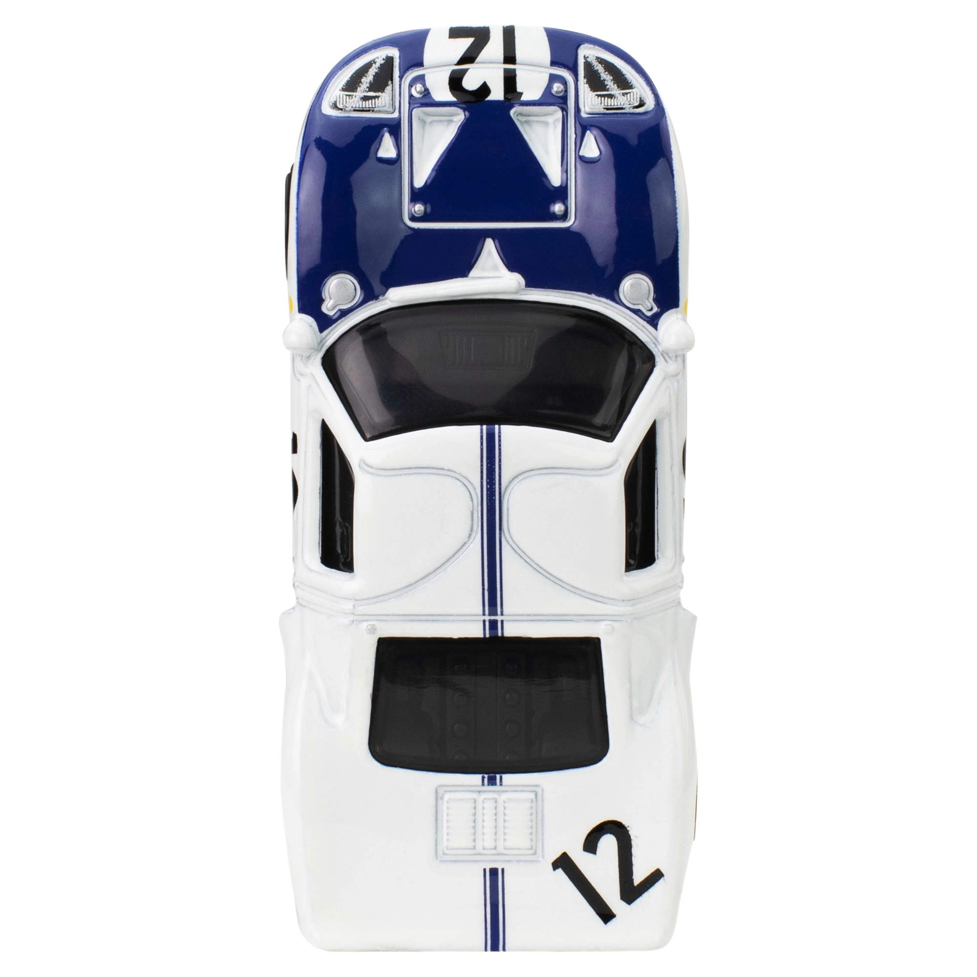 Bijela karoserija s plavim prugama, brojem 12 i realističnim detaljima naglašava ikoničan izgled vozila FORD GT40.