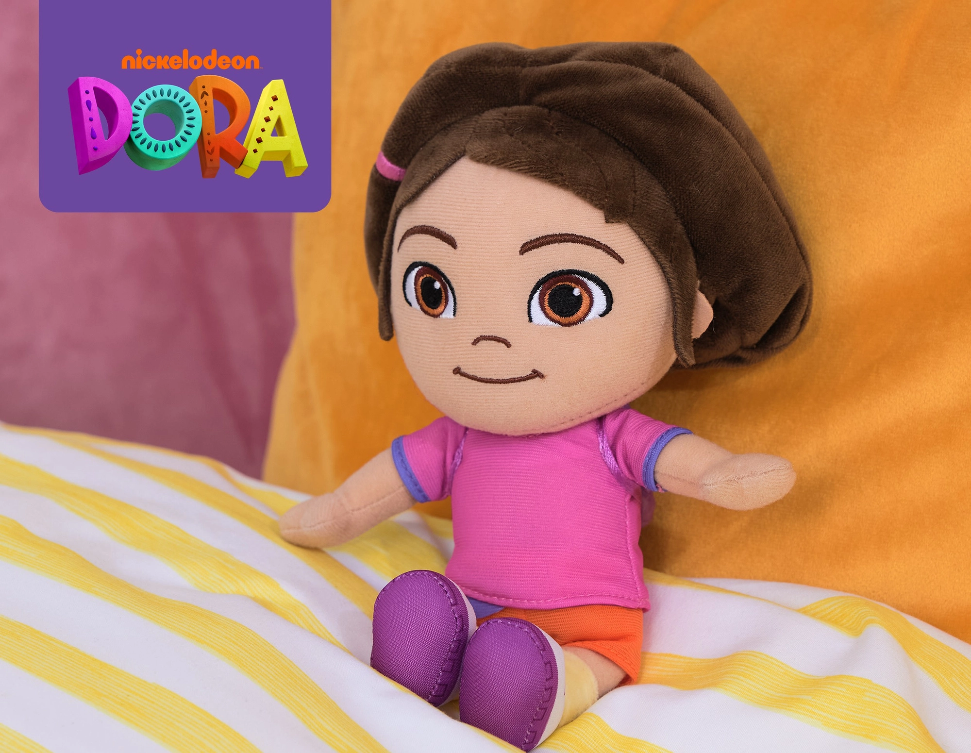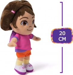 Slatka plišana lutka DORA the Explorer visine 20 cm izrađena je od mekanog materijala i krase je vezenе oči te širok osmijeh za sigurno maženje. U tipičnoj ružičastoj majici i narančastim kratkim hlačama razveselit će sve male obožavatelje omiljenog crtića. Idealna kao prvi plišani prijatelj i suputnik za igru i spavanje.