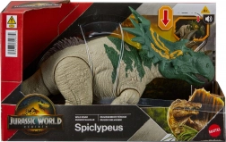 Realistična figura Spiclypeusa prikazuje impresivnog predatora s mišićavom atletskom građom i detaljnim oklopom s bodljama. Sivosmeđe-zelena boja s blagim sjajem i opipljivom teksturom ljuski naglašava filmski izgled i čini je savršenim dodatkom kolekciji svih obožavatelja JURASSIC WORLD-a.