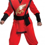 Službeni kostim LEGO NINJAGO Kai za djecu u dobi 7–8 godina savršen je izbor za karneval, maskenbal i tematske proslave. Intenzivno crveno odijelo s otisnutim znakom zmaja i kapuljačom s maskom vjerno prikazuje izgled omiljenog junaka Kaija i osigurava upečatljiv efekt u svakoj prilici.