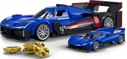 Sastavite kultni automobil Cadillac Project GTP Hypercar iz serije HOT WHEELS Brick Shop od 236 dijelova u mjerilu 1:32. Model s plavom karoserijom, metalnim dijelovima i pokretnim elementima (otvarajuća vrata, upravljanje kotačima) nudi puno zabave i mogućnost unapređivanja izgleda. U kompletu je i kolekcionarski mini model 1:64 – idealan za izlaganje.