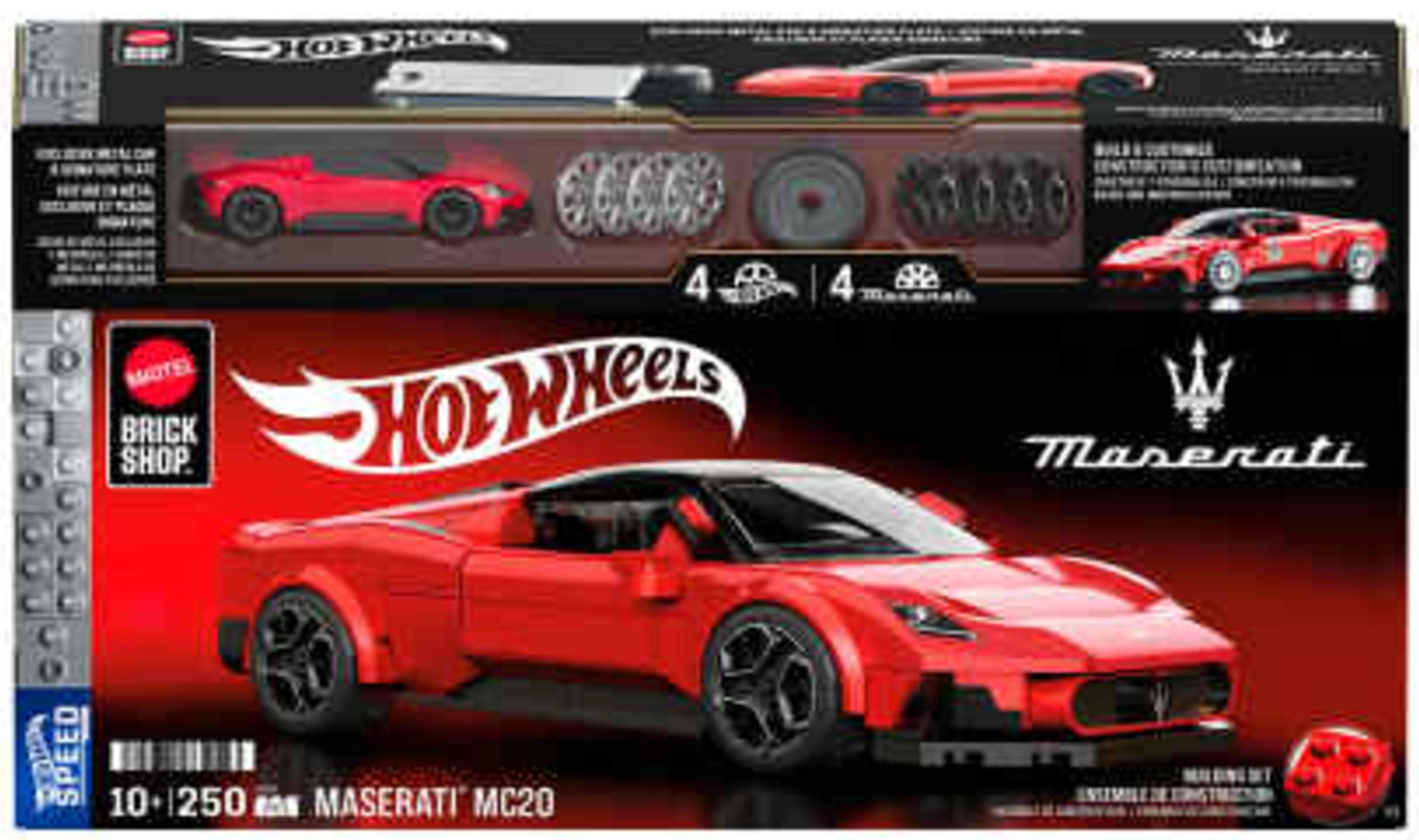 Uživajte u preciznom modeliranju i sjajnoj vožnji u jednom. Stilski Maserati MC20 u izdanju Hot Wheels Brick Shop oduševit će realističnim detaljima, crvenom karoserijom i funkcionalnim elementima koji pojačavaju doživljaj igre i izlaganja na polici.