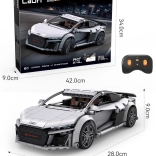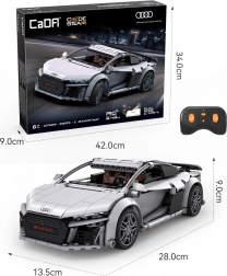RC konstrukcijski set CaDA AUDI R8 Coupé spaja radost stvaranja i modernu tehnologiju. Nakon sastavljanja nastaje detaljan model dimenzija 28 × 13,5 × 9 cm koji vjerno oponaša linije originala u elegantnoj sivoj boji. Zahvaljujući službenoj licenci uživat ćete u autentičnim oblicima karoserije, tisku umjesto naljepnica i detaljnoj unutrašnjosti.