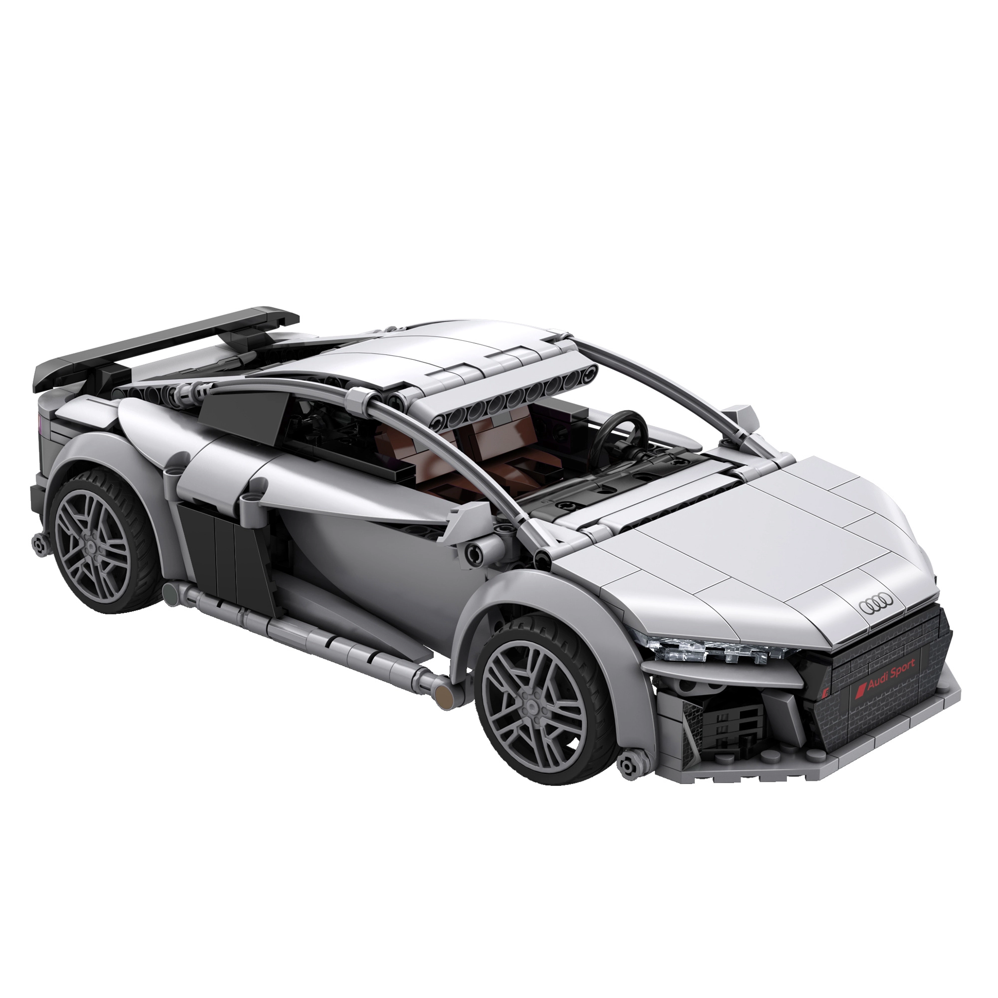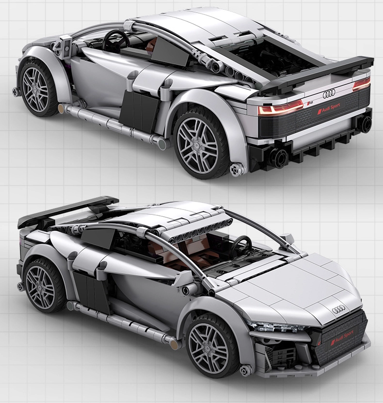 Vjerno izrađeno tijelo AUDI-ja R8 s tiskom umjesto naljepnica, detaljnim svjetlima, maskom i sportskim krilom za autentičan izgled na polici i u vožnji.