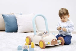 Kocke se mogu praktično spremiti u guralicu. Zahvaljujući ručki, igračku je moguće gurati ili vući, pa je uvijek spremna za igru bilo gdje.