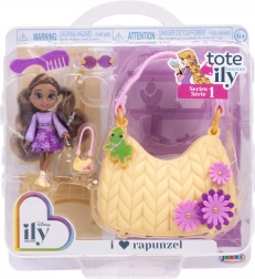 Otkrijte čaroliju mini svijeta s lutkicom inspiriranom RAPUNZEL iz omiljene serije Disney ILY 4Ever Tote Teenies. Ova preslatka lutkica ističe se ljubičastom odjećom sa suncem, dugom kosom i zlatnom mini torbicom koju će djeca obožavati. Praktična ružičasta torbica s motivom Rapunzel prima lutkicu i dodatke, pa je možete ponijeti kamo god krenete.