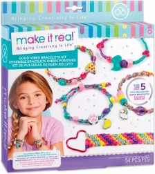 Stvarajte originalan nakit pun boja i raspoloženja uz set Make It Real Good Vibes. U pakiranju ćete pronaći sve potrebno za izradu stilskih narukvica – konce od pamuka, metaliziranu uzicu, perlice, privjeske i jednostavne upute. Idealan kreativni poklon za djecu i početnike.