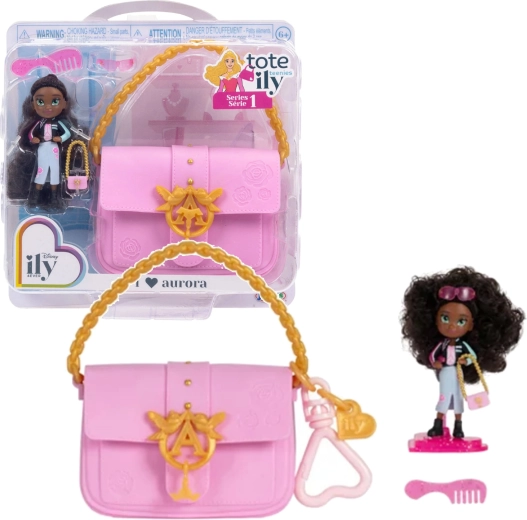 Dio seta je i veća ružičasta torba s aurorinim motivom u koju možete praktično spremiti lutku i sve sitnice. Zahvaljujući ručki dijete je lako može ponijeti kamo god poželi. U pakiranju ne nedostaju ni šarmantni dodaci za daljnju igru i izlaganje – češalj, sunčane naočale i postolje za lutku.