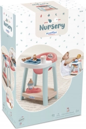 Kompaktna stanica s odlaganom policom i promišljenim rasporedom lako se prenosi i skladišti. Kvalitetni materijali i glatki rubovi osiguravaju sigurno korištenje za djecu već od 18 mjeseci.