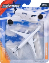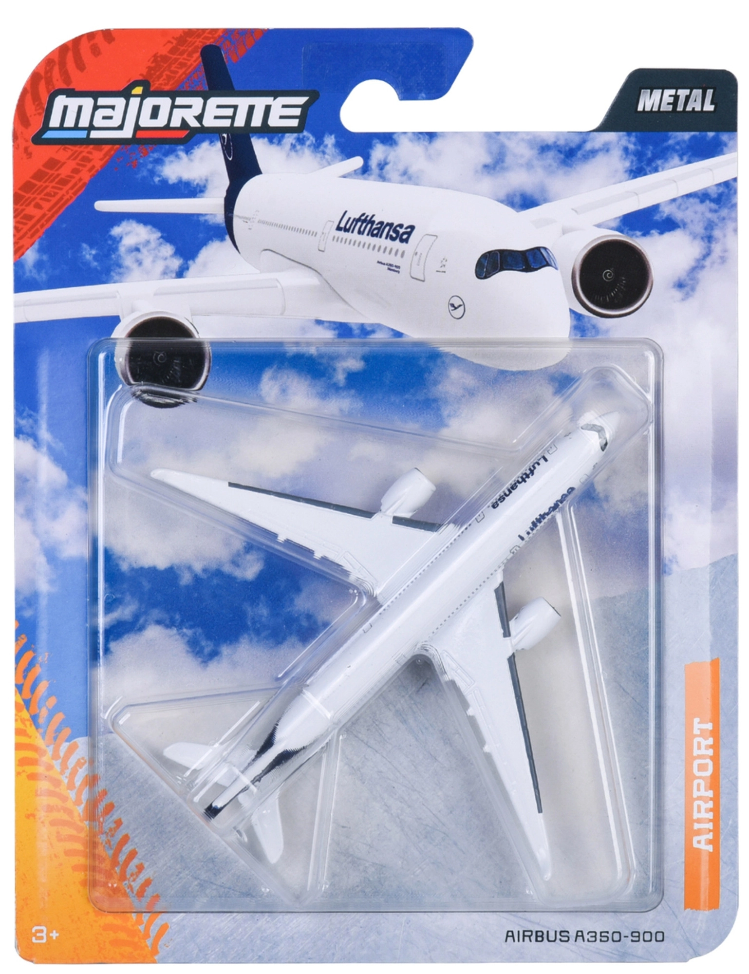 Ovaj metalni model iz edicije Majorette Airport vjerno oponaša stvarni putnički zrakoplov Airbus A350-900 u ikononom bijelom dizajnu s crnim detaljima i logotipom Lufthansa. Zahvaljujući preciznoj izradi i izdržljivom metalnom materijalu, izvrstan je dodatak svakoj dječjoj kolekciji i poklon za male entuzijaste zrakoplova.