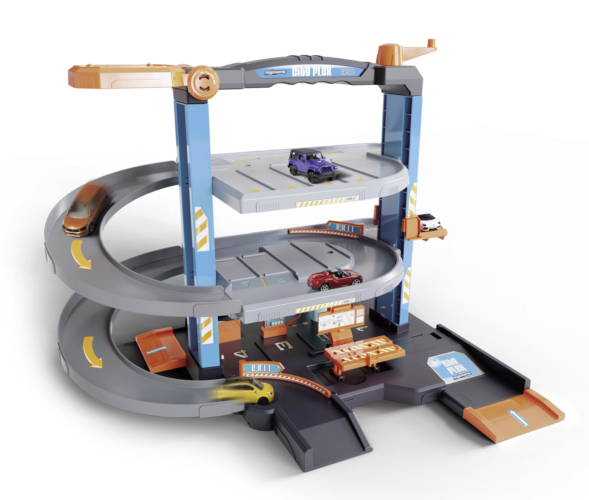 Ovaj detaljno izrađen set donosi kompletno gradsko okruženje za male vozače. Trokatna garaža s glatkim rampama omogućuje nesmetan silazak i uspon, lift kojim se upravlja košaricom prevozi autiće na svaki kat, a servis s benzinskom postajom podržavaju realistične scenarije igre. U pakiranju je 5 gradskih vozila tipa “resorak” za trenutnu zabavu.