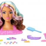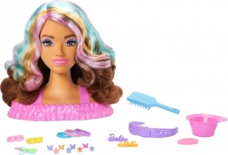Postanite mala frizerka s BARBIE glavom za češljanje i bogatim setom dodataka. Duga smeđa kosa s pastelnim pramenovima mami na izradu pletenica, punđa i repova. U kompletu su ukosnice i gumice, četka, traka za kosu te zabavni efekti promjene boje na kopčama i usnama pomoću spužvice. Idealno za kreativnu igru i razvoj fine motorike.