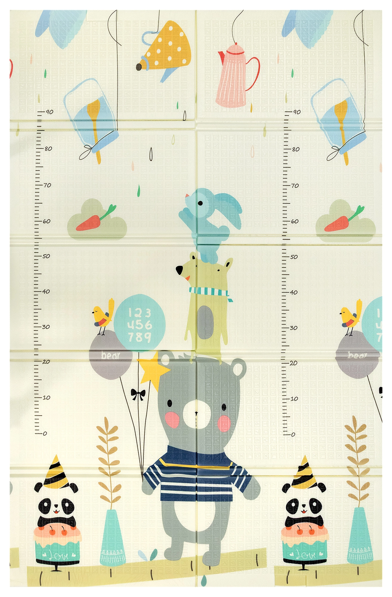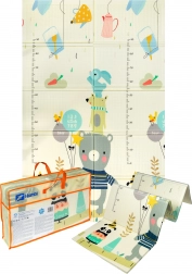 Otkrijte univerzalnu podlogu koja raste s vašim djetetom od prvih dana života. Zahvaljujući debljini od 1 cm izvrsno izolira od hladnoće i ublažava udarce, pa je idealna za sigurnu igru, puzanje i prve korake. Dvostrani dizajn nudi s jedne strane preslatke pande, a s druge životinjice s brojevima i metrom za mjerenje rasta, što potiče rani razvoj i učenje.