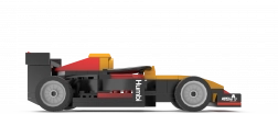 Niski kokpit, prednje krilo i stražnji spojler daju modelu autentičan izgled. Četiri kotača se slobodno okreću za nesmetano kretanje po ravnim površinama.