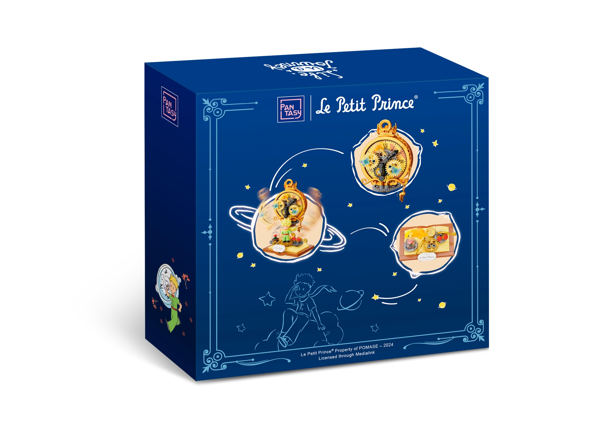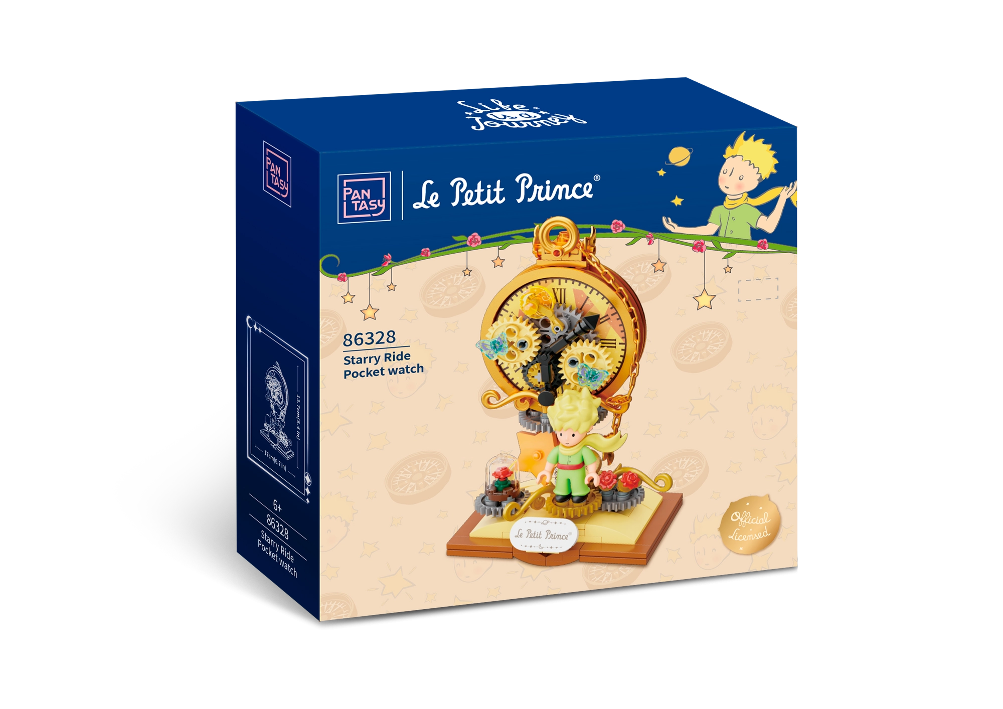 Ovaj licencirani konstrukcijski set PANTASY prenosi čaroliju svijeta Malog princa u dojmljivu dekoraciju: Mali princ ispred stiliziranog brojčanika sa zlatnim zupčanicima, dopunjen simboličnom ružom pod kupolom i zvjezdanim detaljima. Pastelne boje i nježne linije prizivaju izvorne ilustracije pa će model odlično izgledati na polici, radnom stolu ili u dječjoj sobi.