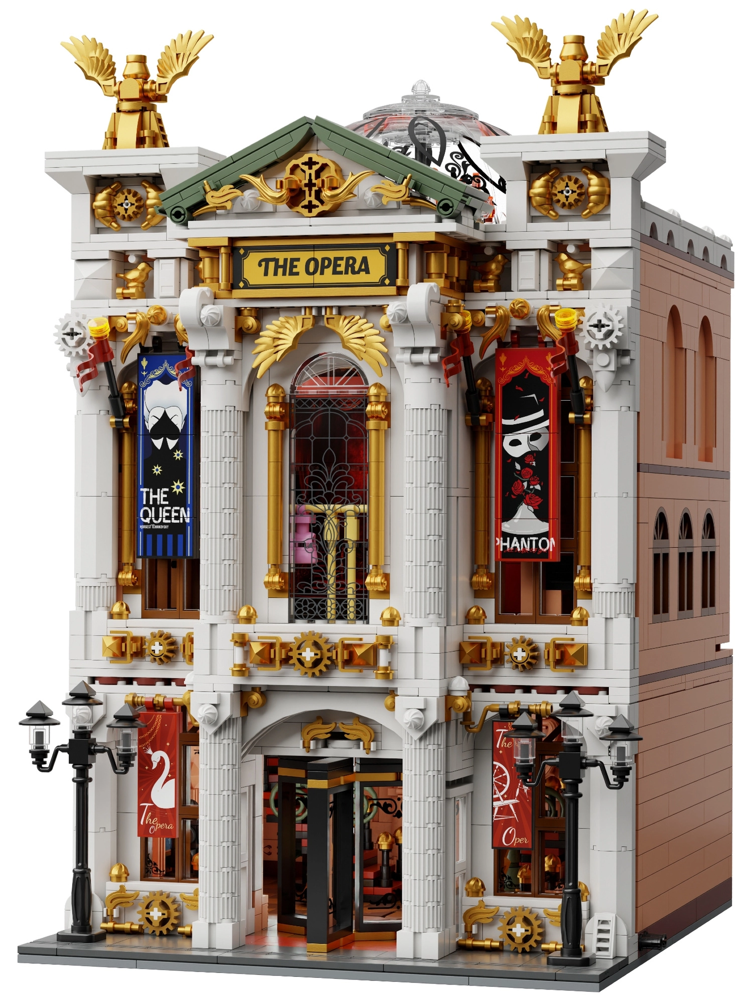 Ovaj kolekcionarski set donosi atmosferu veličanstvene opere izravno na vaš stol. Pročelje sa pozlaćenim detaljima, stupovima, zastavama i uličnim lampama osvaja na prvi pogled, dok interijer i ulazni dio pozivaju na insceniranje vlastitih priča.