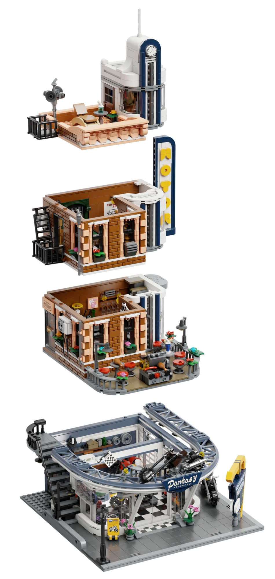 Ugaoni restoran s trgovinom motociklima, figuricama i uličnim dodacima nudi mnoštvo scenarija za igru i izlaganje.