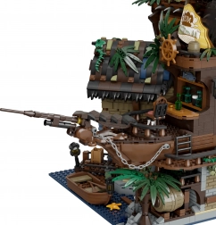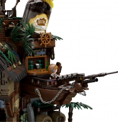 Udahnite život morskim pričama s bogato razrađenim setom za slaganje gusarske gostionice. Konstrukcija kombinira rustikalno drvo, lance, bačve, svjetiljke i simbol lubanje sa prekriženim kostima; ne nedostaju ni jedro, zastava te funkcionalni detalji poput vrata, dizalice i malog čamca. Model će oduševiti i djecu i odrasle graditelje te postati upadljiv ukras svake kolekcije.