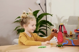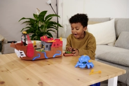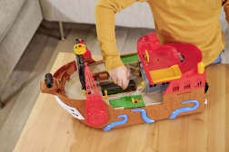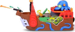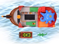 Odvojiva hobotnica sa svjetlosnim i zvučnim efektima osvjetljava oči i svojim pipcima „zarobljava“ autić ili druge dijelove – idealno za dramatične gusarske priče. Brod i splav plutaju na vodi, pa su savršeni za kadu, bazen ili plićak. Nakon kupanja akcija se nastavlja na tepihu zahvaljujući interaktivnim funkcijama i glatkoj vožnji autića.