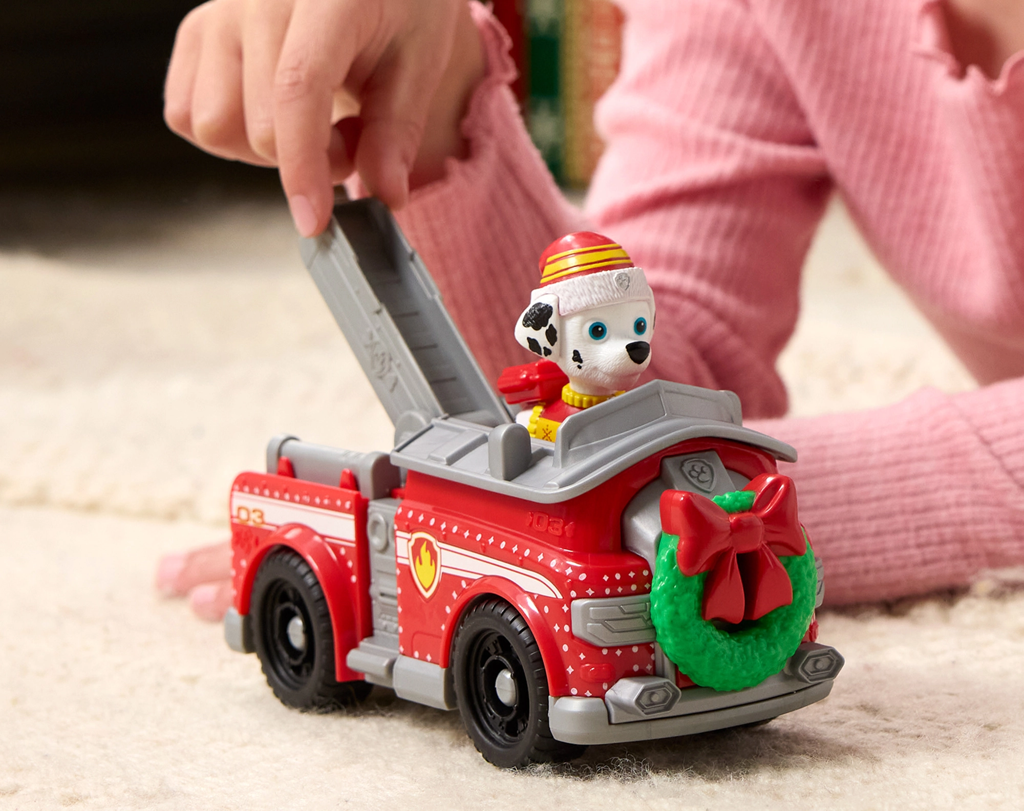 Ovaj službeni set brenda Spin Master donosi omiljenog psića Marshalla u zimskom izdanju i stilsko vatrogasno vozilo s vijencem na prednjoj strani. Djeca mogu figuricu smjestiti u kabinu i krenuti u pustolovne misije. Zahvaljujući kotrljajućim kotačima i preklopnim ljestvama igra je glatka i puna akcije.
