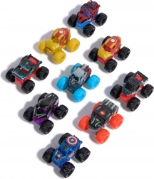 - 3 mini monster trucka (Thor, Black Panther, Iron Man)
