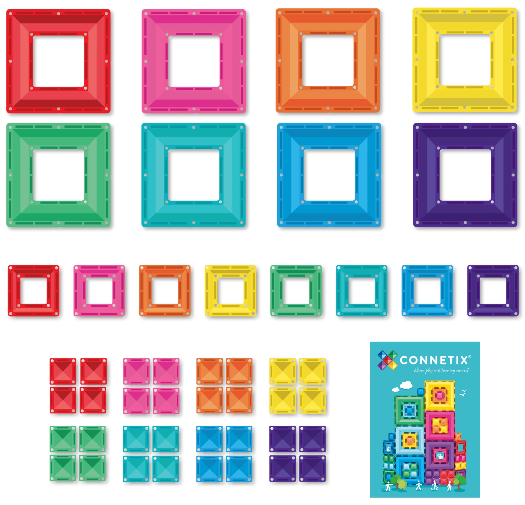 Set uključuje portalne okvire za izražene arhitektonske elemente te praktične male kvadrate za detaljne konstrukcije. Odličan je za igru kod kuće, vrtiće, Montessori aktivnosti i osjetilnu terapiju. Dijelovi su kompatibilni s drugim CONNETIX setovima, pa svoju kolekciju možete postupno širiti.