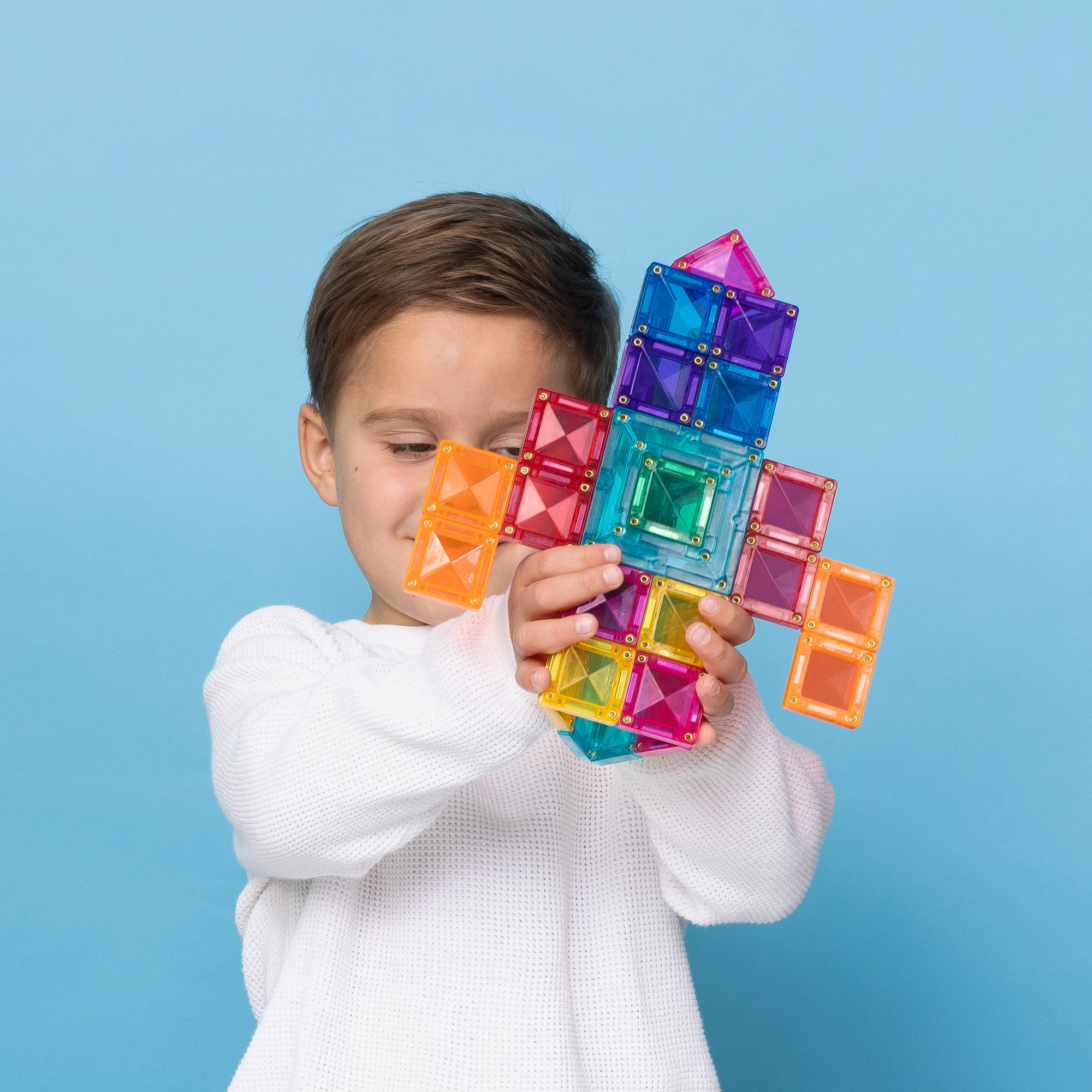 Dijelovi se privlače sa svih strana i čvrsto drže zajedno. Djeca lako grade visoke tornjeve, mostove i složene geometrijske oblike bez nepotrebnog urušavanja.