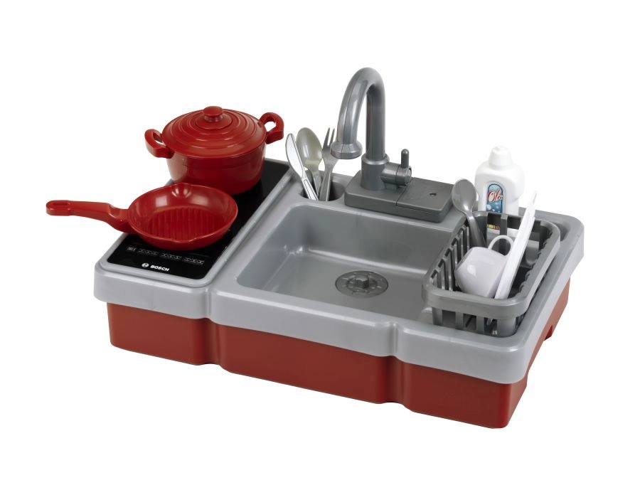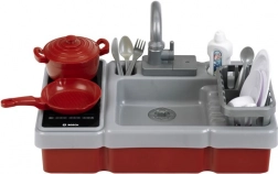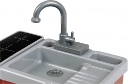 Ovaj razrađeni set omogućuje djeci sigurno oponašanje svakodnevnih kuhinjskih aktivnosti. Zahvaljujući funkcionalnoj slavini s cirkulacijom vode i dodirnoj indukcijskoj ploči sa svjetlom i zvukom, igra je maksimalno realistična i zabavna. Ne nedostaju ocjeđivač, mjesto za “detergent” i bogat set pribora za posluživanje i kuhanje.