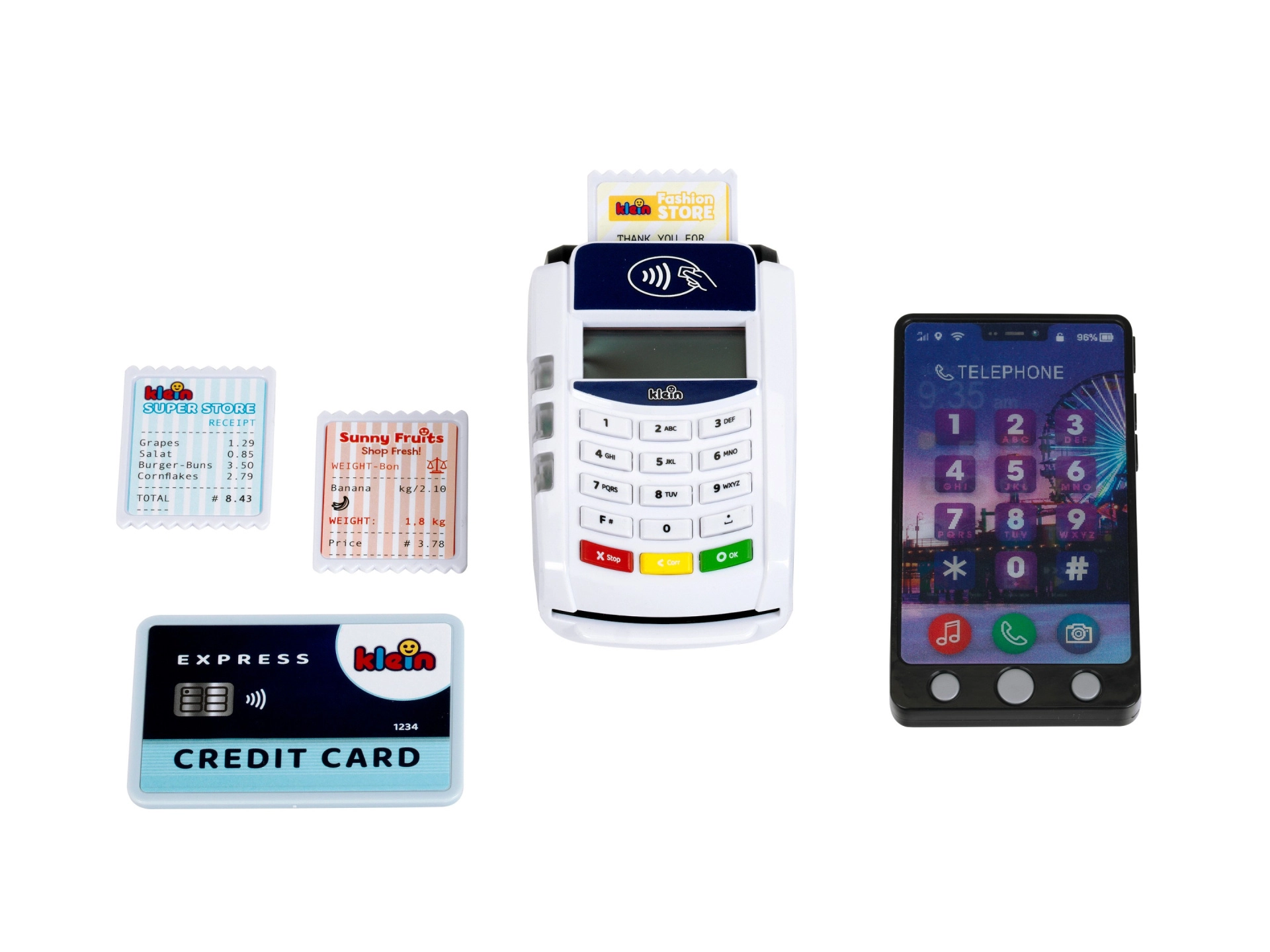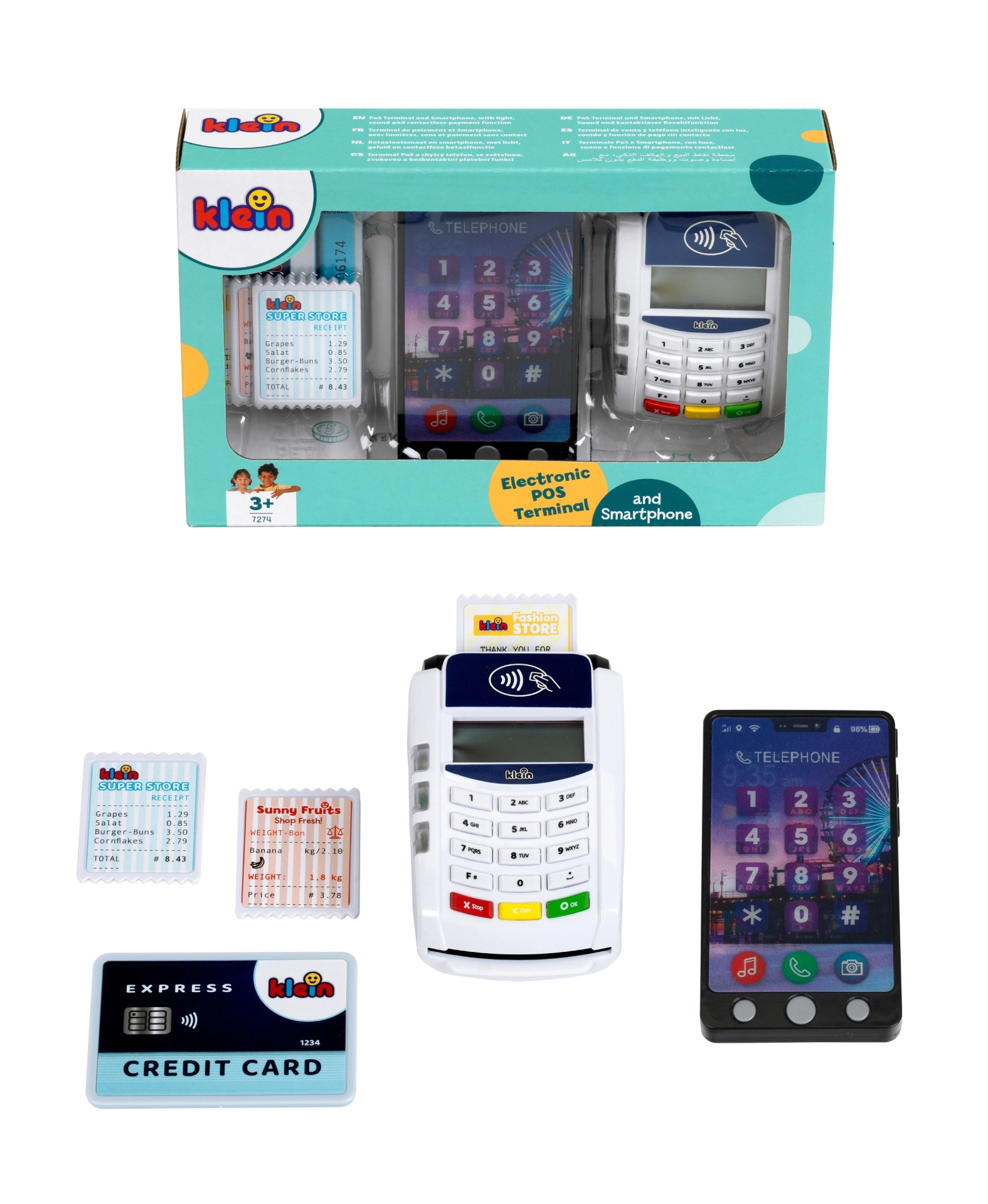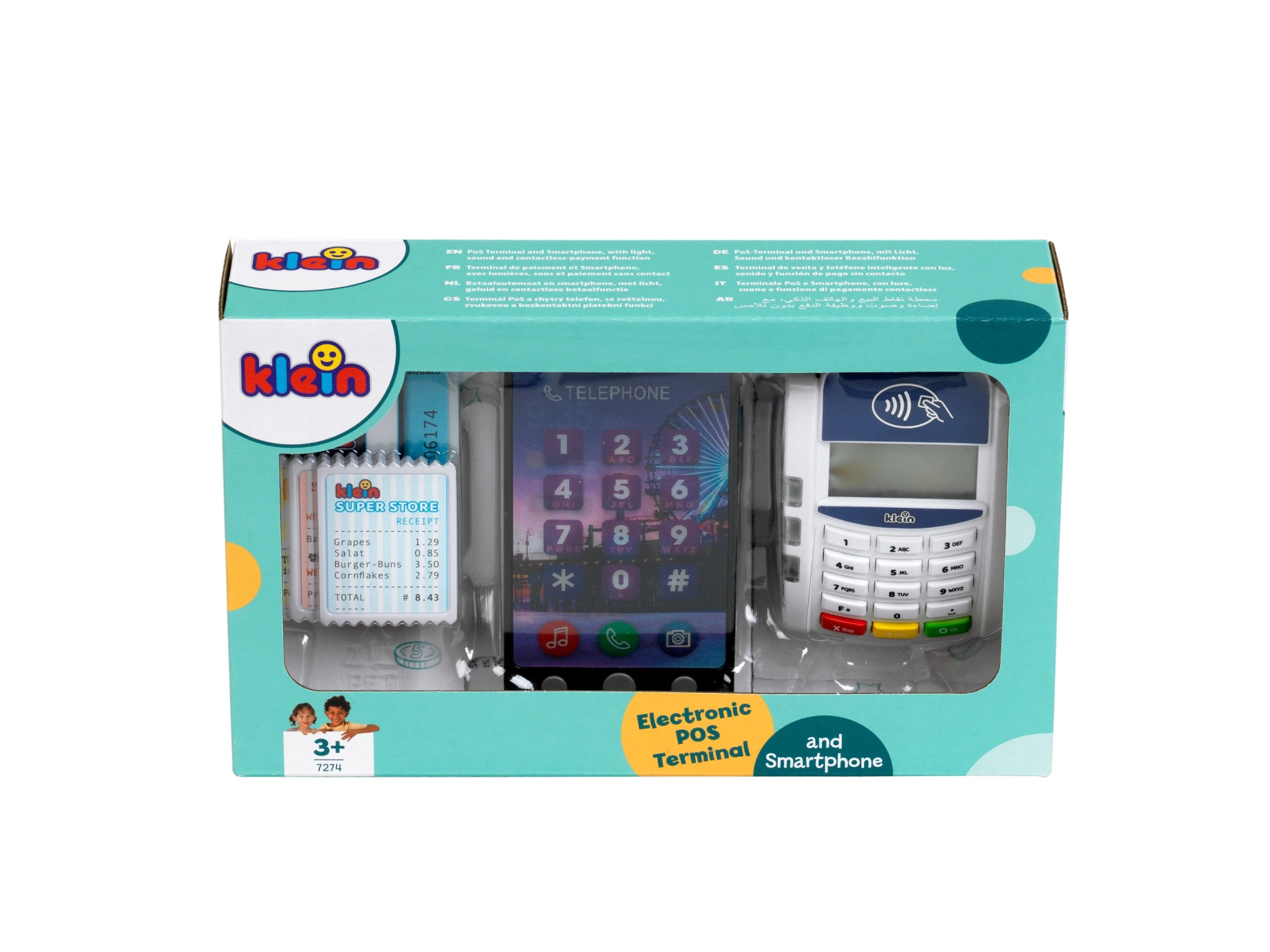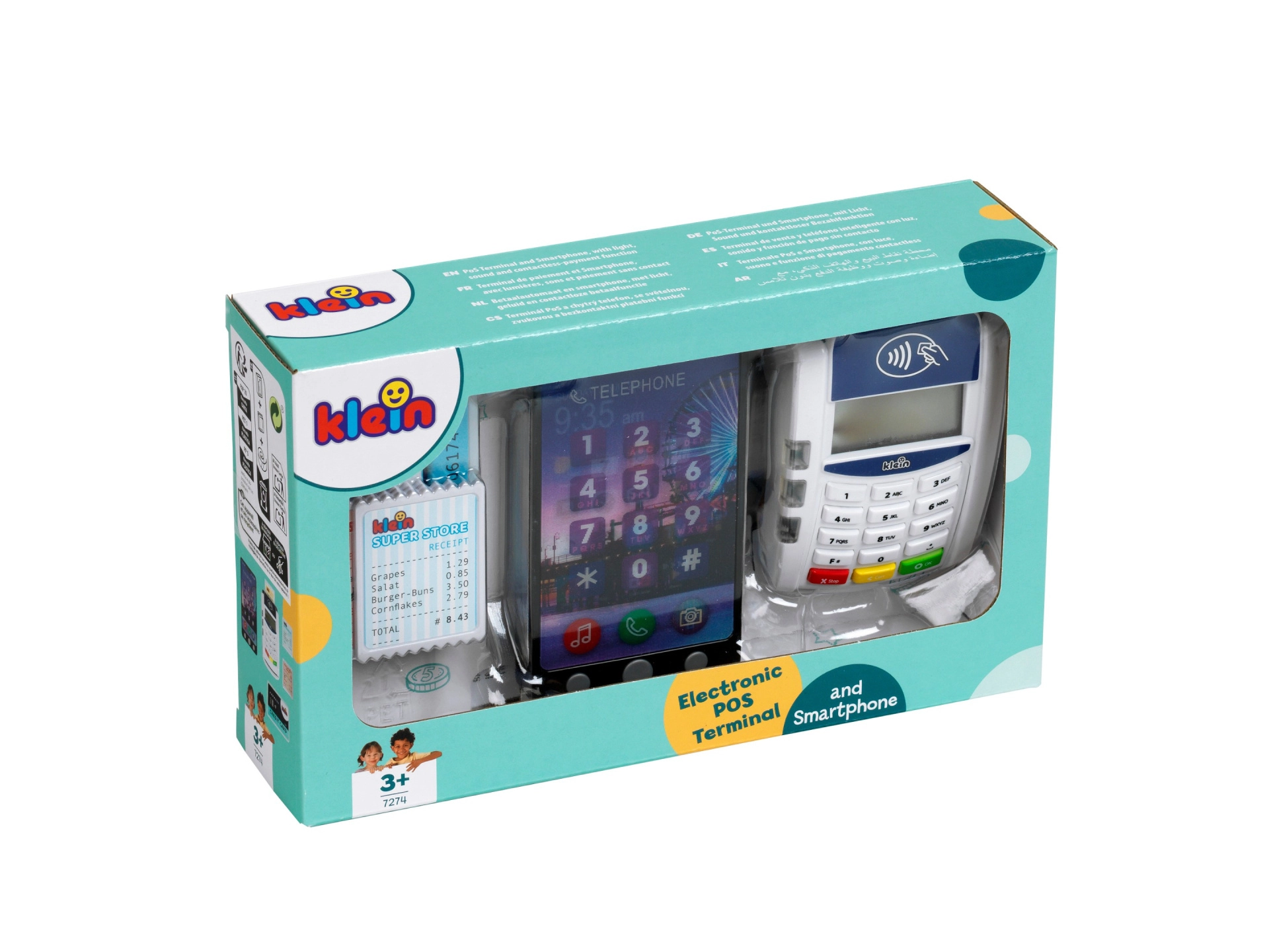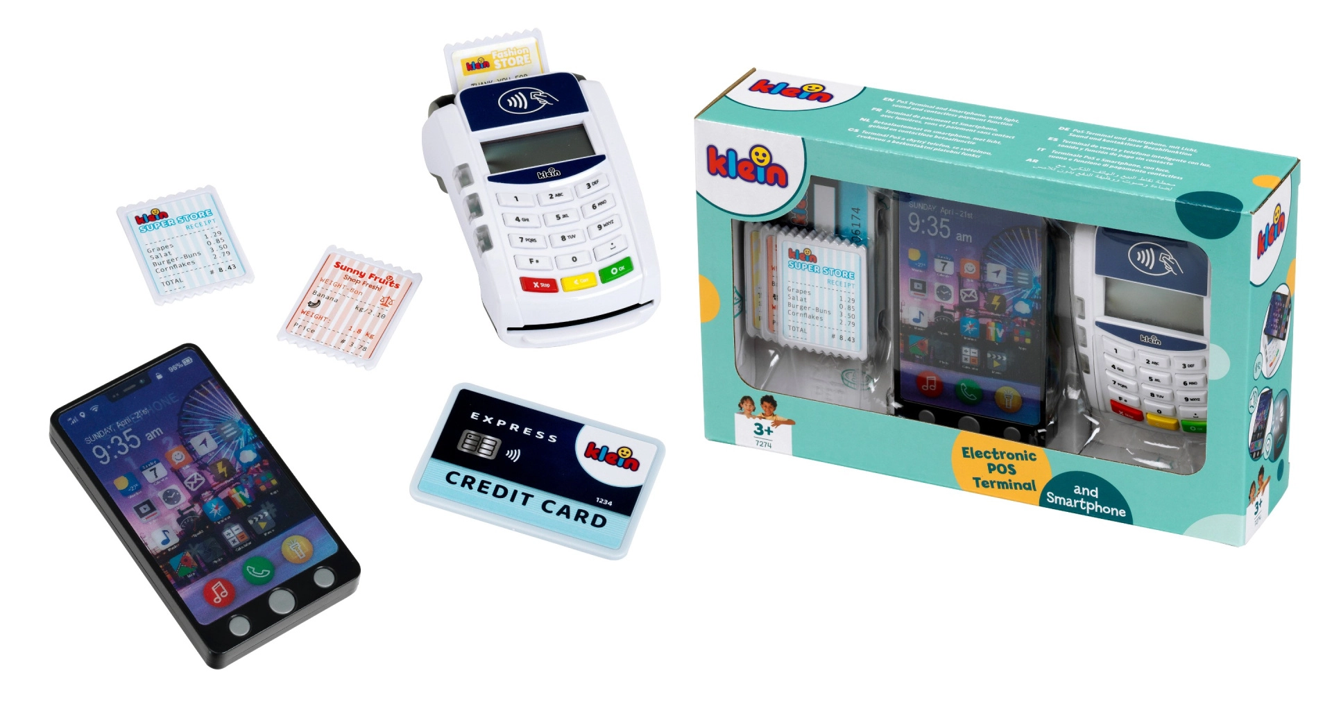 Interaktivni dječji POS platni terminal marke KLEIN donosi realističnu igru trgovine. Nudi beskontaktno plaćanje pomoću kartice i telefona, oduševljava svjetlosnim i zvučnim efektima te pomaže djeci razumjeti principe kupnje i vrijednost novca. Dio kompleta je pametni telefon s holografskim zaslonom i gumbima sa zvukovima.