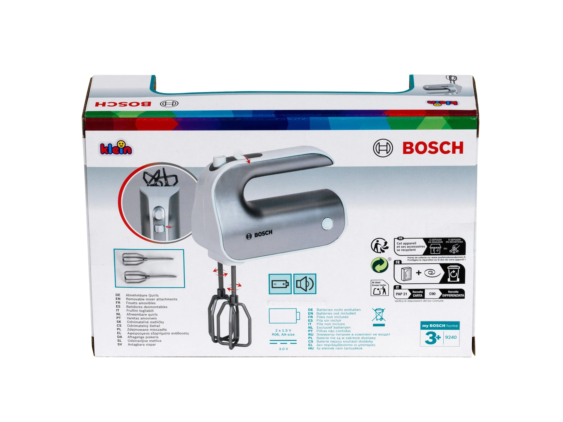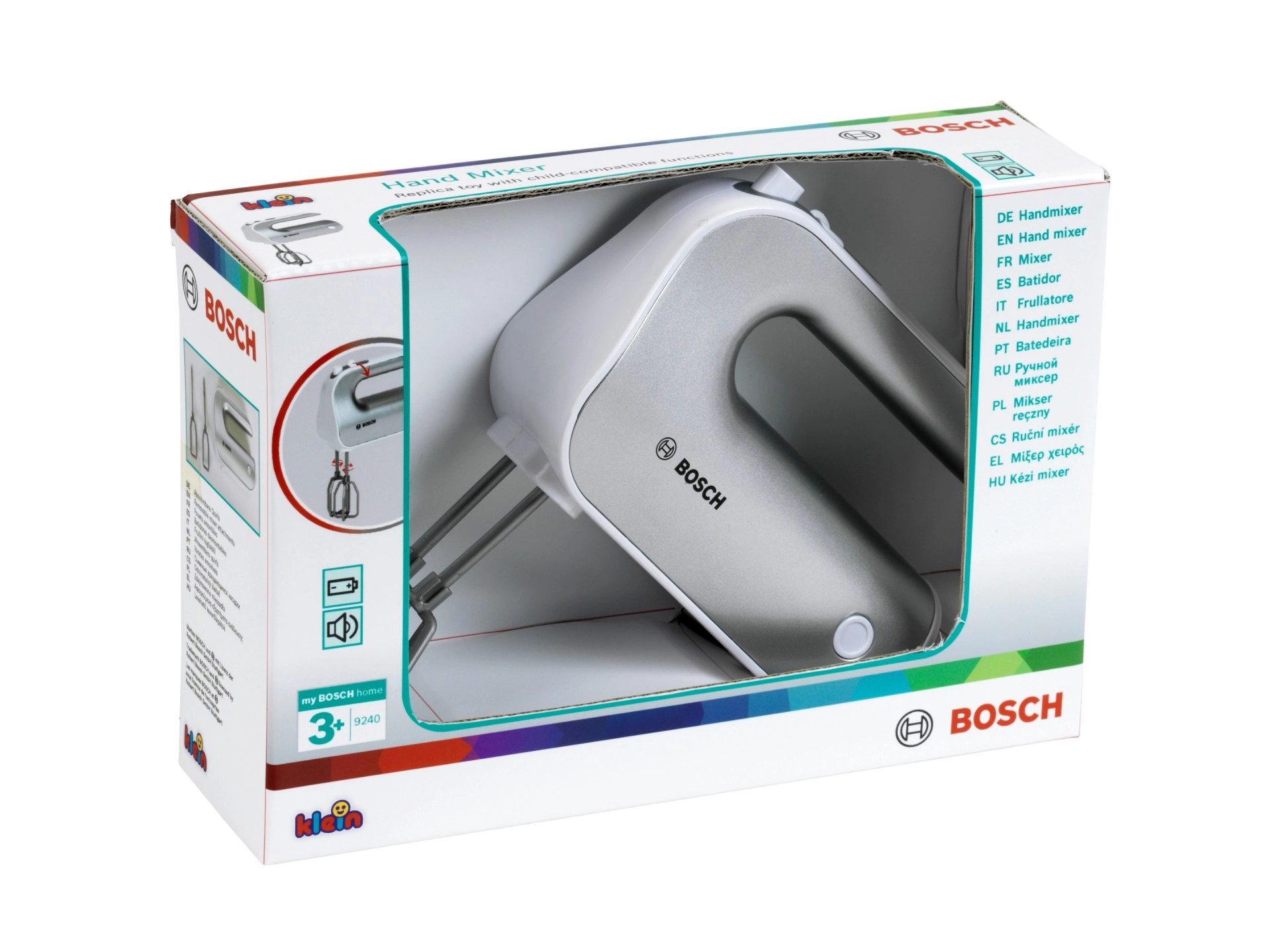 Realističan dječji ručni mikser BOSCH brenda Klein razveselit će male kuhare vjernim izgledom i funkcijama. Ima rotirajuće metlice, prekidač brzine i odvojive nastavke za još veću autentičnost igre. Lagana i sigurna konstrukcija od kvalitetne plastike idealna je za dječje ruke.