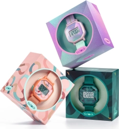 Ovaj digitalni sat u pastelnim bojama spaja zabavan izgled i praktične funkcije. Pravokutni LCD zaslon osigurava dobru čitljivost vremena, dok robusno plastično kućište štiti sat pri svakodnevnom nošenju. Tekstilni remen u nijansama lila i mentola s upečatljivom prugom mekan je, prozračan i lako se podešava.