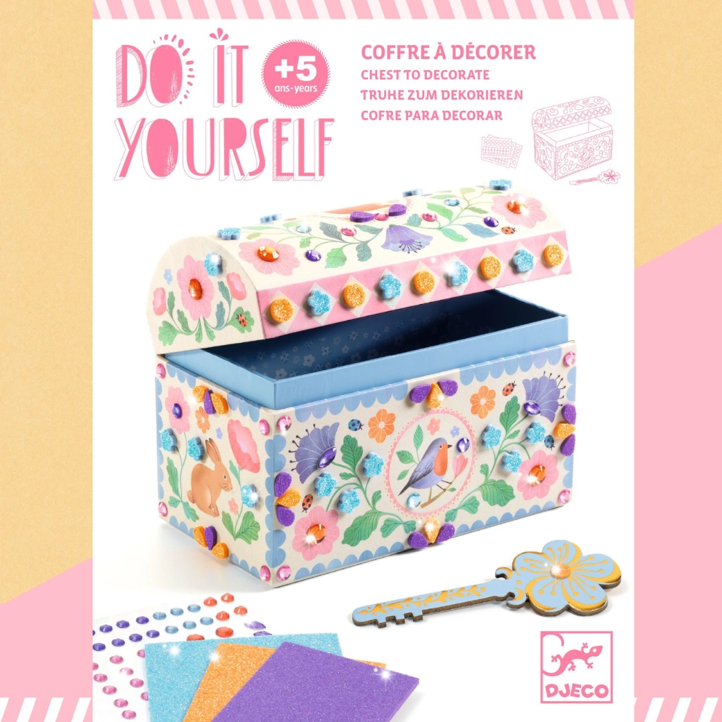 Napravite vlastitu škrinju s tajnim dnom i sakrijte svoje dragocjenosti sa stilom! Ovaj kreativni set brenda Djeco potiče finu motoriku, kreativnost i maštu djece. Jednostavan postupak, kvalitetni materijali i prekrasan rezultat na koji će djeca biti ponosna.