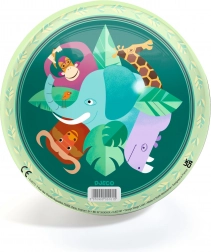 Šareni motivi lava, žirafe, slona i majmuna čine loptu atraktivnom igračkom koja potiče djecu na kretanje i razvija njihovu maštu.