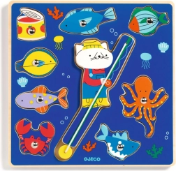 Umetaljka puzzle Ribolov brenda Djeco idealna je prva slagalica za najmlađu djecu. Veliki, čvrsti dijelovi s glatkom površinom dobro leže u dječjoj ruci i lako se umeću u pripremljene oblike. Vizualno privlačne ilustracije ribica i podmorskog svijeta motiviraju na ponavljanu igru.