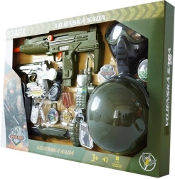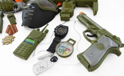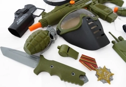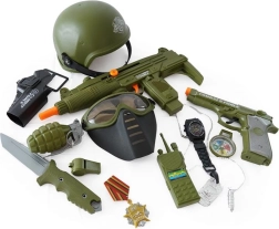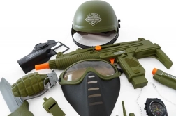 Set za malog vojnika s kacigom, pištoljem i dodatnom opremom.