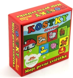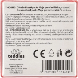 Drvene slikovne kocke Moje prve životinjice marke TEDDIES odličan su izbor za prve slagalice. Četiri kvalitetne drvene kocke u praktičnoj kartonskoj kutiji omogućuju sastavljanje šest različitih motiva kućnih životinja. Djeca će uživati u slaganju slika, ali i u građenju tornjeva, dvoraca ili ograda za životinjice.
