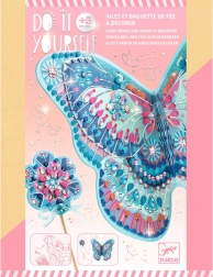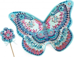 Ovaj čarobni DIY set sadrži sve potrebno kako bi djeca izradila očaravajuća leptirova krila i cvjetni čarobni štapić s metalik efektima. Unaprijed otisnute površine i šablone jasno pokazuju gdje lijepiti dragulje, šljokice i glitter, pa će rezultat uvijek biti uspješan.