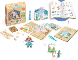 DJECO DIY kućica Mi House – Stella je kreativni set uz koji djeca sama slažu i dorađuju vlastitu minijaturnu kućicu. Sadrži unaprijed otisnute dijelove za jednostavnu gradnju te dekoracije koje interijeru daju osobit stil. Mali dizajneri tako uživaju ne samo u sastavljanju, već i u naknadnoj igri s kućicom i figuricom.