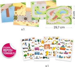 Otkrijte svijet prometa s premjestivim naljepnicama DJECO. Djeca mogu naljepnice lako lijepiti, premještati i ponovno koristiti na velikim tematskim podlogama. Idealno za putovanja, restorane i za kod kuće – bez ljepila i bez nereda.