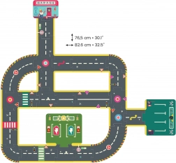 Grafika voznih traka, pješačkih prijelaza, semafora i znakova donosi djeci autentičnu prometnu situaciju i uči ih pravilima ponašanja na cesti.