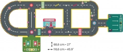 Set sadrži različite oblike dijelova za izradu ravnih dionica, zavoja, raskrižja i kružnog toka. Šareni simboli, pješački prijelazi i semafori čine igru realističnijom i zabavnijom. Zahvaljujući čvrstoj izradi izdržava i intenzivnu svakodnevnu igru.
