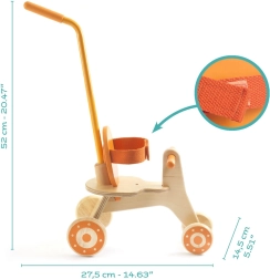 Ovaj preslatki tricikl za lutke izvrstan je dodatak dječjem kutku. Djeca će uživati u vožnji svoje omiljene lutke i pritom vježbati motoriku, maštu i socijalne vještine. Zahvaljujući čvrstoj izradi prikladan je za svakodnevnu igru.
