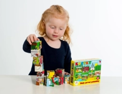 Dvanaest kocaka omogućuje djeci slaganje šest različitih scena – primjerice Crvenkapicu ili Ivicu i Maricu. Zabava koja ne dosadi.