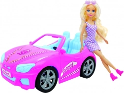 Stilizirana lutka u kariranom outfitu lako sjeda u vozilo, pa djeca mogu odmah krenuti na izlete i igrati se vozačice.