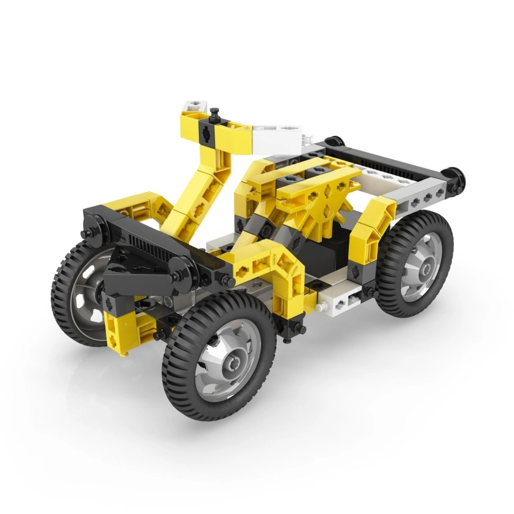 Ovaj univerzalni set donosi djeci zabavu i učenje u jednom. Iz jednog seta dijelova sastavit ćete automobile, helikoptere, dizalice, strojeve i mehaničke mehanizme. Integrirani motor na 2× AAA baterije (nisu uključene) daje modelima pokret i uči djecu osnovama mehanike.