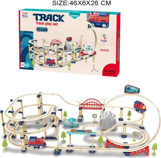 Ovaj opsežan građevni set donosi djeci beskrajne mogućnosti za izgradnju vlastitog željezničkog svijeta. Zahvaljujući raznolikosti dijelova, pruga se lako može mijenjati i proširivati, pa se djeca uče kreativnosti, planiranju prostora i finoj motorici. Lokomotiva se kreće tračnicama naprijed i oduševit će autentičnim zvukovima koji pojačavaju doživljaj igre.