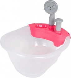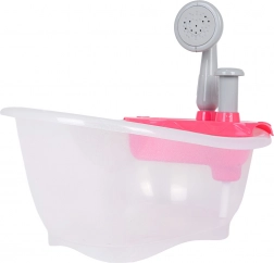 Presladak kadić za lutke s tušem razveselit će djecu od 3 godine. Nakon punjenja vodom i pritiskom na pumpicu iz tuša doista teče voda. Set je izrađen od sigurnih i kvalitetnih materijala, idealan kao poklon za male njegovateljice.